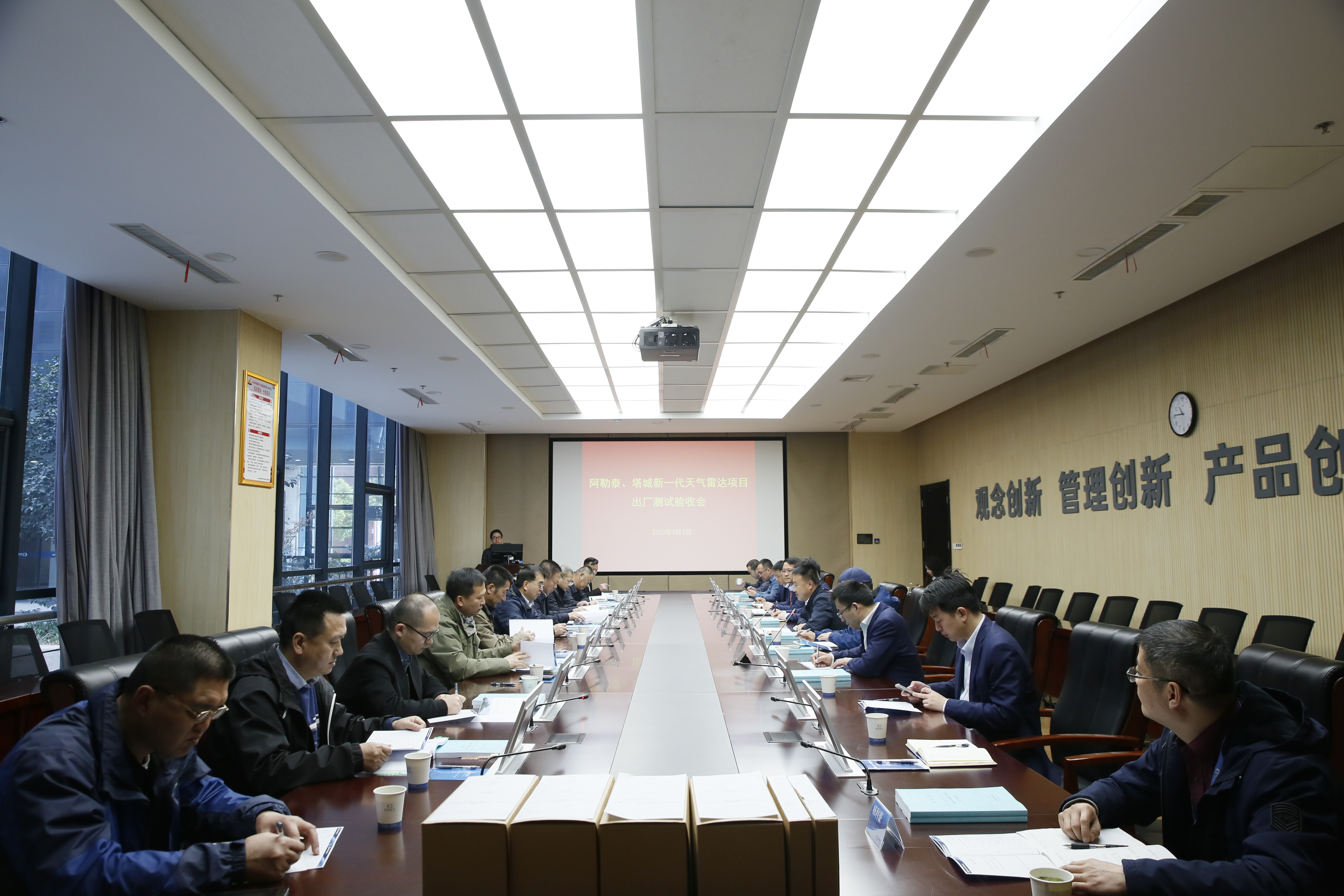 3月2日,suncitygroup太阳集团承建的新疆阿勒泰、塔城新一代天气雷达进行了出厂验收。新疆气象局副局长谢国辉、中国气象局气象探测中心研究员高玉春等专家组成员来司开展交流指导与验收工作。公司党委书记、总经理任小伟,副总经理陈晓辉,及项目团队参加验收。