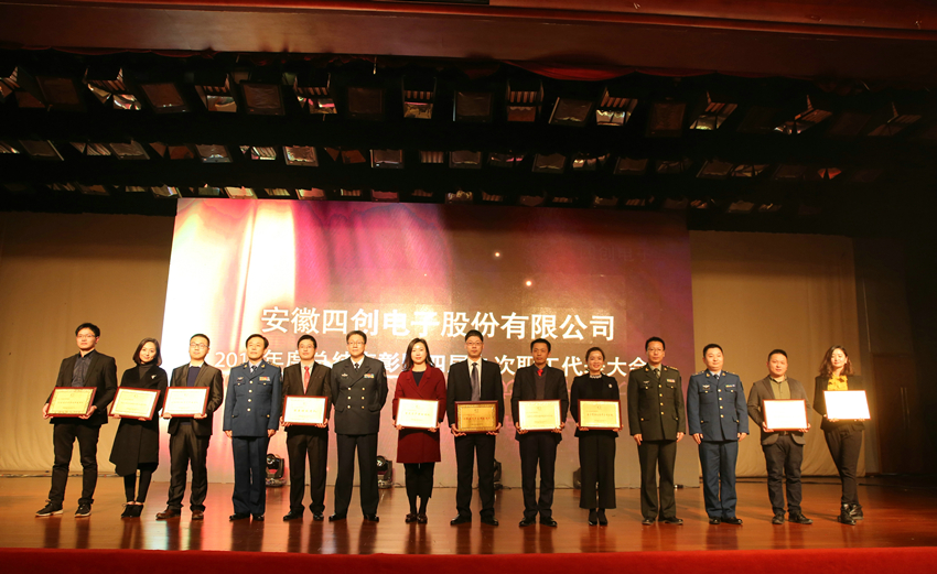 公司董事长陈信平、公司监事会主席陈学军、中国人民解放军驻38所军事代表室总代表王庆、总装驻合肥地区军事代表室副总代表许辉、海军驻合肥地区军事代表室代表於建生、空军驻安徽地区军事代表室代表岳耀帅应邀出席大会。大会由公司党总支书记王晓龙主持。
