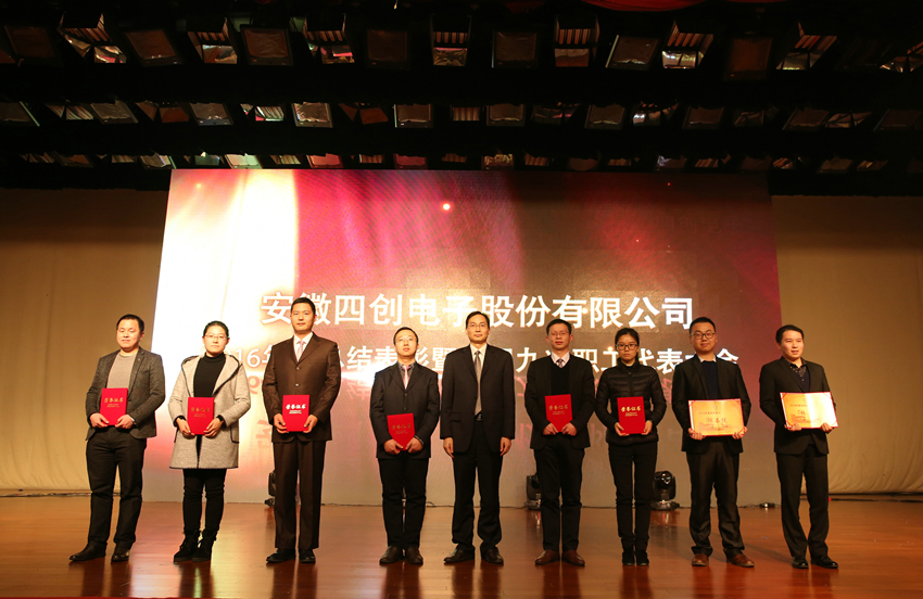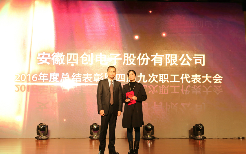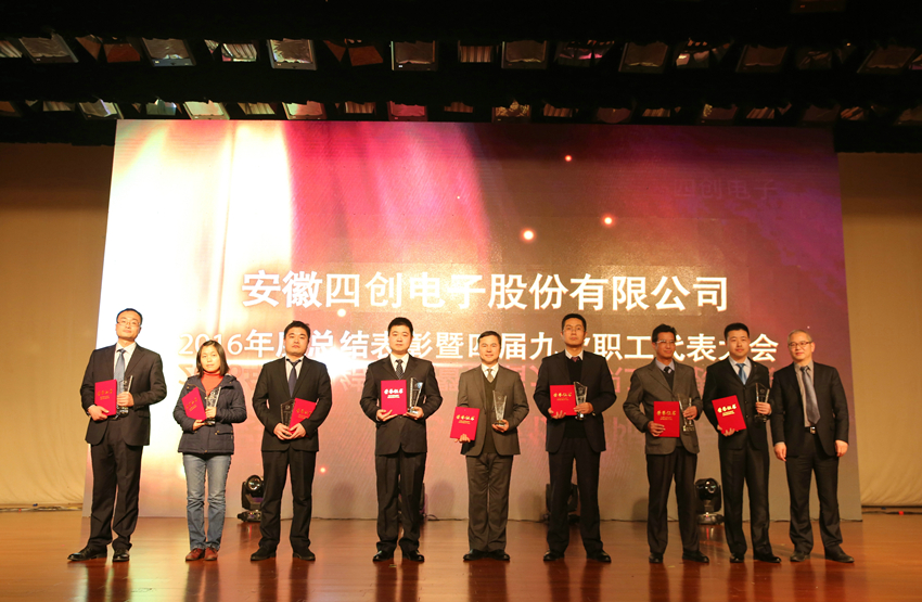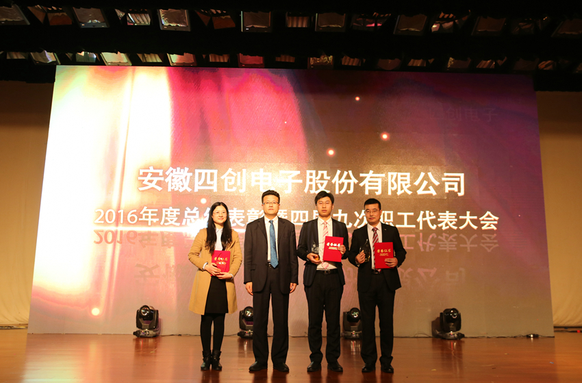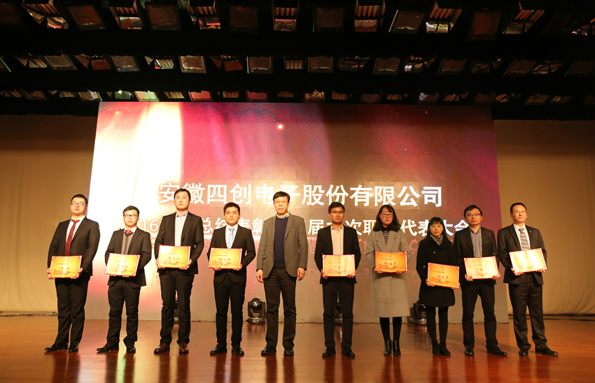 大会还对2016年度各项荣誉进行了表彰,新能源事业部、通信导航事业部、安防事业部、气象探测事业部、雷达装备部、工程技术室、企业运营部等7个部门荣获年度“先进集体”;3D交通管理雷达研发团队、智慧与安全大数据技术研讨会策划团队、CMMI5级资质申报团队、降本增效团队、重大资产重组团队、无线城市平台研发团队、国家重大科学仪器开发专项项目组、电子商务采购平台项目组、无线城市创新管理研究团队、危险车辆智能联网联控系统项目组等10个团队荣获年度“优秀团队”;市场部主任袁园被授予“总经理特别奖”,安防事业部副总经理郑雅玲、系统软件室主任范联伟、采购招标中心主任王自柯被授予年度“杰出经理人”;高洪昌、唐瑾、薛虎、高磊、吴斌、廖志强、洪建荣、年欣等8人荣获年度“杰出员工”;姚黄、陈鸣、杨劲松、黄微琳、胡俊等5人荣获年度“优秀新人”;占燕萍等53名员工荣获年度“优秀员工”称号。大会对获奖集体和个人分别进行了表彰。
