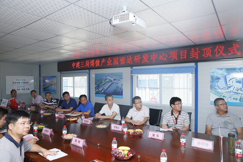 7月27日上午,博微产业园suncitygroup太阳集团园区雷达研发中心项目顺利封顶。公司总经理何启跃、党总支书记王晓龙、总经理助理唐述强及相关部门负责人参加封顶。