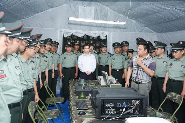 在公司展厅,王晓龙书记和沙雪松副总经理分别向来宾介绍了公司的发展历程、主营业务和科研成果,并重点参观了便携式指挥所。参观过程中,来宾一行认真听取介绍,并不时与公司领导交流相关项目和产品在各自领域的应用状况。