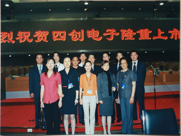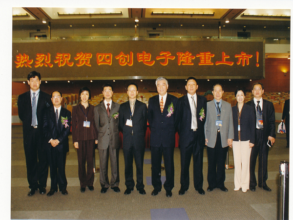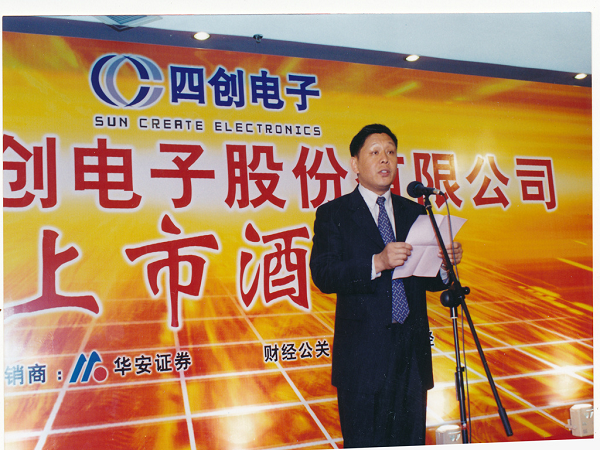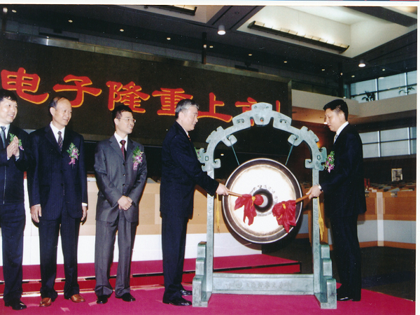 2004年5月9日晚,于上海紫金山大酒店举行上市酒会,时任中国电子科技集团公司总经理王志刚与时任公司董事长吴曼青共筑香槟塔