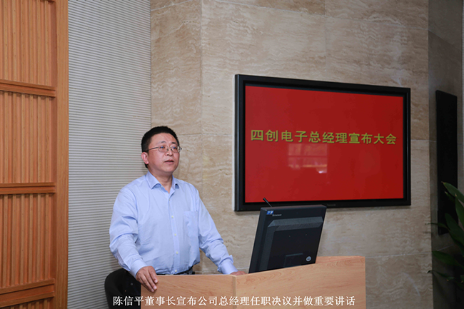 陈信平董事长在会上宣布了《关于何启跃同志任职决议的通知》,并做了重要讲话,讲话中,陈信平董事长对何启跃总经理的上任表示祝贺,并对刘克胜总经理任职期间对公司所做的贡献表示了感谢。讲话指出,新任总经理的就任既充分体现了集团公司对上市公司发展的高度重视,也是上市公司落实集团公司管理提升的重要契机。他要求四创人坚定“中国雷达第一股”和四创公司在集团公共安全领域快速发展的信念不能忘;要勇于担当使命,带领大家落实战略,开拓市场,创新机制,发展产业,为员工创造更好的福祉。