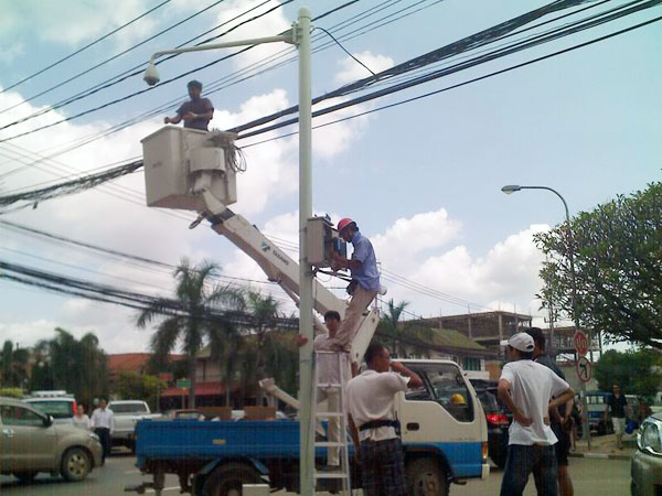目前,工程进入电子警察及卡口的路面切割阶段,为加快进度,避免交通高峰期施工,项目组人员只能在夜间进行施工,每天从晚间7点工作至凌晨5点。工作强度之大,工时之久非常人能够承受。与此同时,国内的项目组成员也积极配合老挝现场,做好后方支持工作。