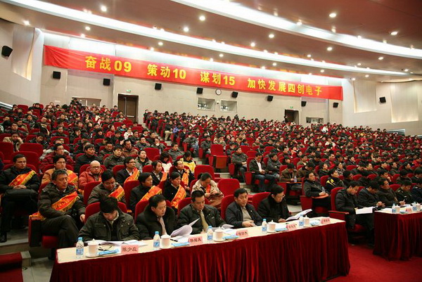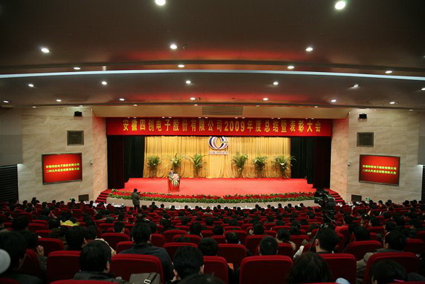 2010年元月11日下午,合肥市政府礼堂外彩旗飞扬、礼堂内鲜花绽放,500多名四创员工欢