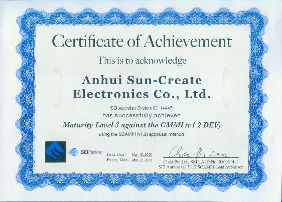 2010年5月31日,我公司取得CMMI三级证书,成为我省第三个达到CMMI三级水平的企业。